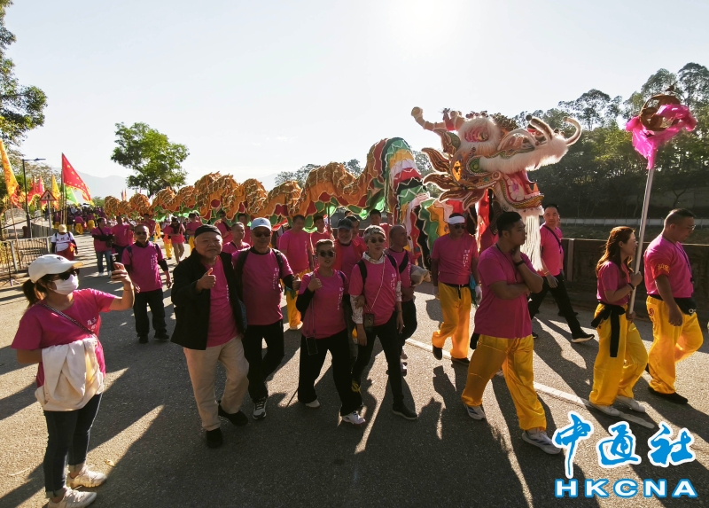 12月16日,香港新界廈村鄉羅屋金龍起舞,眾鄉親啟程趕赴錦田參加“錦田鄉酬恩建醮”。據悉,錦田傳統活動“錦田鄉酬恩建醮”是香港歷史最悠久的太平清醮之一。據說300多年前,清朝兩廣總督周有德和王來任協助沿海居民復界,讓人民返鄉生活。為報答恩德,錦田鄉民在1684年興建周王二公書院教育子弟,並每10年舉行一次酬恩祭典,以答謝先賢、超渡遷界喪生的亡魂及祈福保佑境內居民。2025年錦田鄉酬恩建醮踏入第34屆在12月13日至19日舉行一系列傳統儀式和活動,如大士巡游、祈福儀式、粵劇大戲、龍獅表演、鄉鄰齋宴等等。 (香港中通社記者洪少葵攝) 香港中通社圖片
