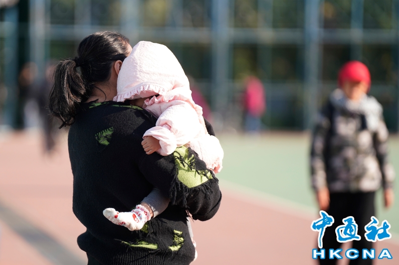 香港入冬以來最低溫 家長帶孩子曬太陽