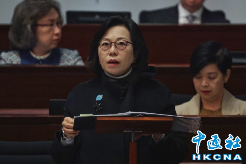 •   1月14日,香港特區政府民政及青年事務局局長麥美娟在第八屆立法會首次會議上發言。(香港中通社記者  謝光磊 攝) 香港中通社圖片