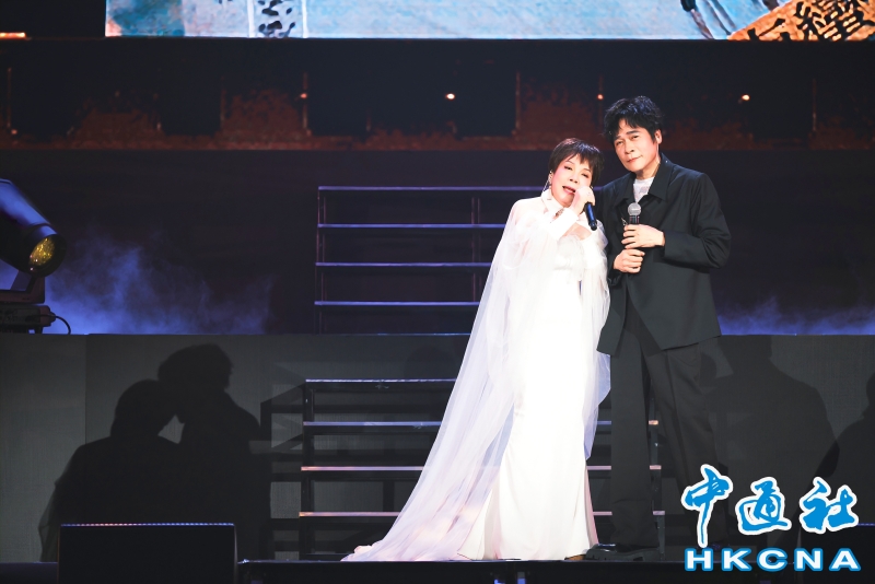 •   1月17日晚間,有“寶島歌王”稱號的台灣歌手洪榮宏登上高雄流行音樂中心,舉辦“舊情綿綿”演唱會。圖為息影55年的資深歌手丁黛現身,獻唱經典名曲《送君珠淚滴》。 香港中通社圖片