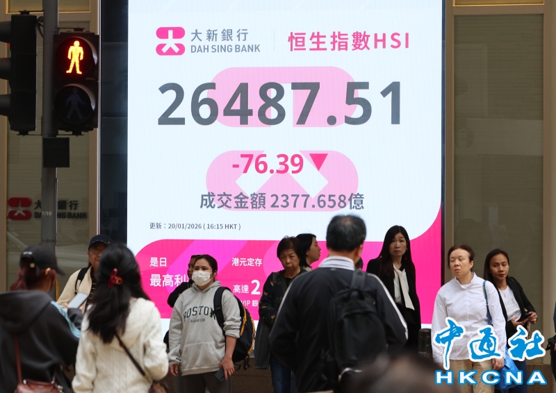•   1月20日,截至收盤,香港恆生指數跌76.39點,跌幅0.29%,報26487.51點,主板全天成交2377.66億港元。(香港中通社記者 鄧梓傑 攝) 香港中通社圖片