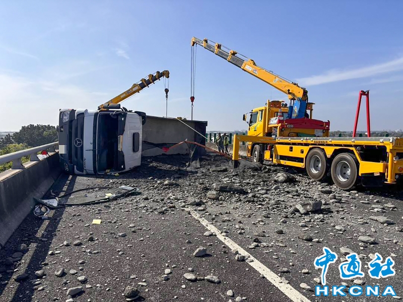 台灣砂石車翻覆 北上車道回堵分享到: