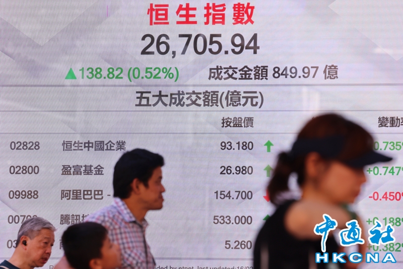 香港恆生指數漲138.82點 報26705.94點收盤分享到: