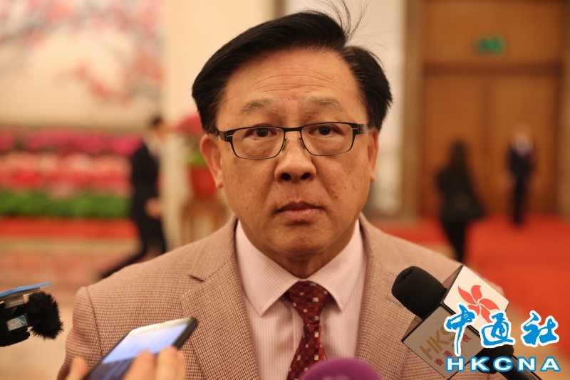 (全國兩會)全國政協委員何君堯在開幕會後接受媒體採訪