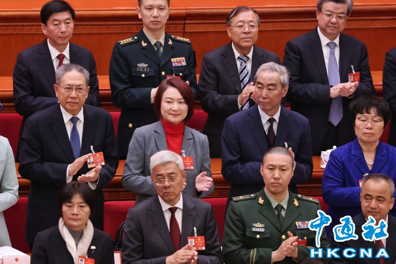 •   3月5日,十四屆全國人大四次會議開幕會在北京人民大會堂舉行。圖為全國人大常委李慧琼(二排左二)出席會議。(香港中通社記者 謝光磊 攝) 香港中通社圖片