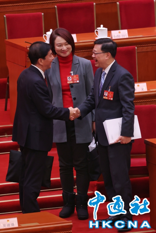 (全國兩會)李家超會後與駱惠寧、李慧琼等交流