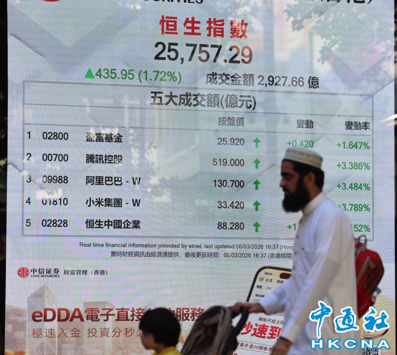 香港恆生指數漲435.95點 報25757.29點收盤分享到: