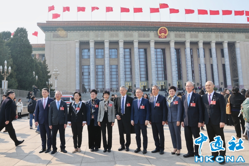 •   3月12日,十四屆全國人大四次會議在北京人民大會堂舉行閉幕會。圖為會前,澳區全國人大代表在人民大會堂前合影。(香港中通社記者 謝光磊 攝) 香港中通社圖片