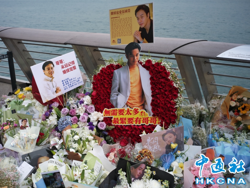•   4月1日,距離香港歌手、演員張國榮逝世的那個黃昏已過去23年。來自五湖四海的人們卻並未將他遺忘,在尖沙咀星光大道張國榮的手印前,擺滿了寄託思念的鮮花。 (香港中通社記者  謝光磊 攝) 香港中通社圖片