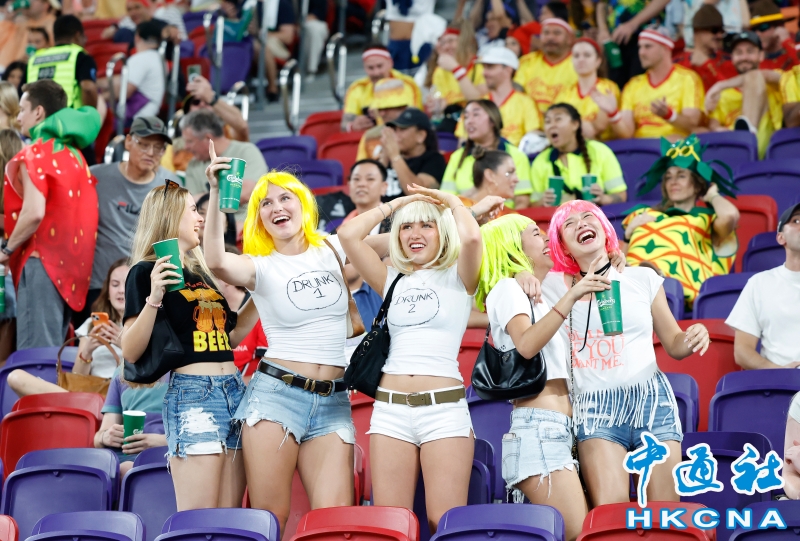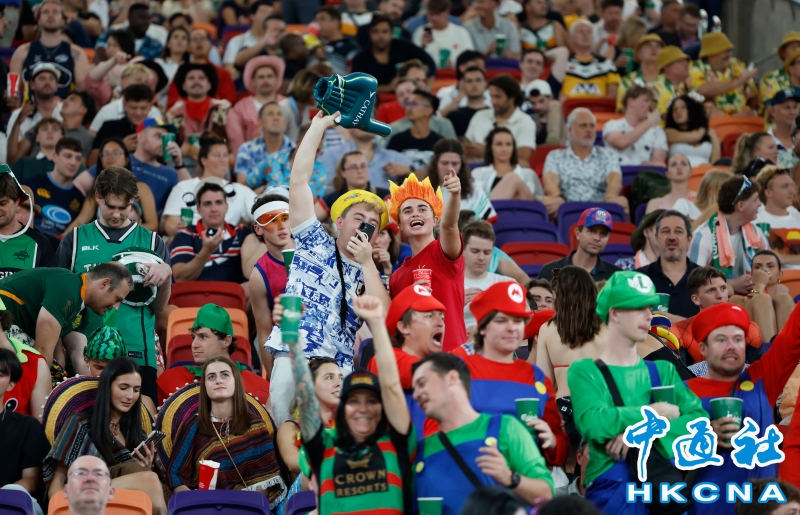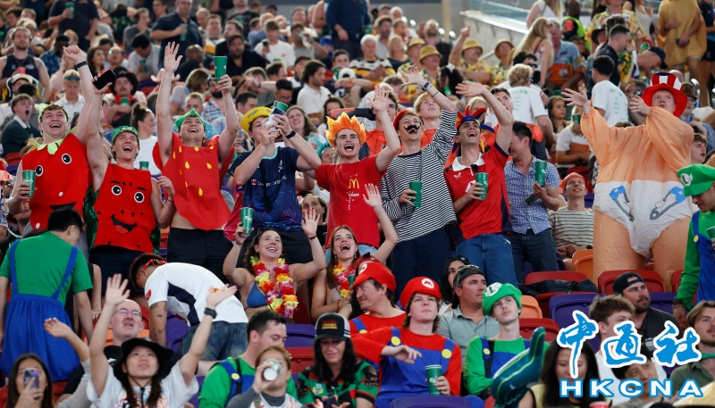 •   4月17日,為期三天的2026香港國際七人欖球賽在啟德體育園開鑼,來自世界各地的30支隊伍帶來72場精彩賽事。圖為現場看球興奮的球迷。(香港中通社記者 陳奕啟 ) 香港中通社圖片