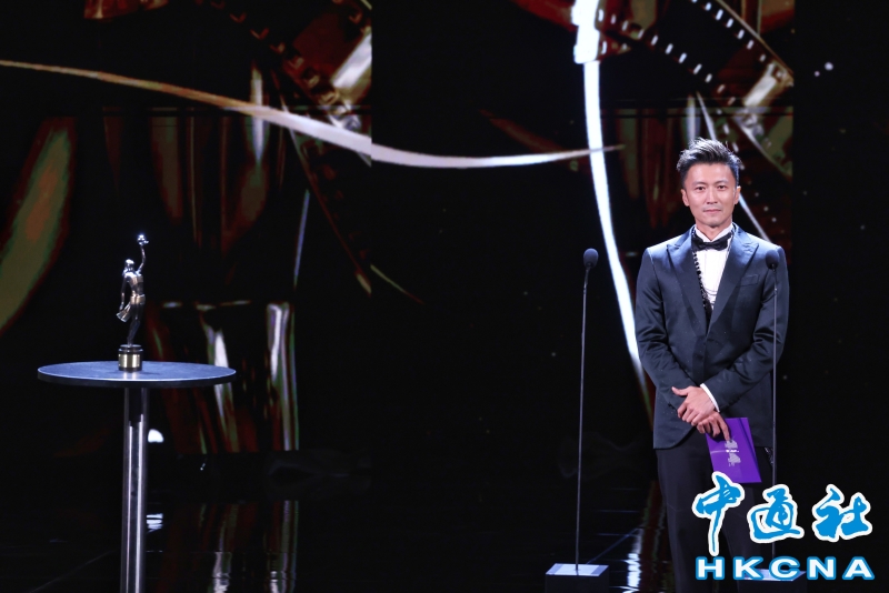 •   4月19日,香港影壇盛事“第44屆香港電影金像獎”頒獎禮在香港文化中心舉行。梁家輝憑《捕風追影》第五次奪得最佳男主角。圖為謝霆鋒擔任頒獎嘉賓。(香港中通社記者  謝光磊 攝) 香港中通社圖片
