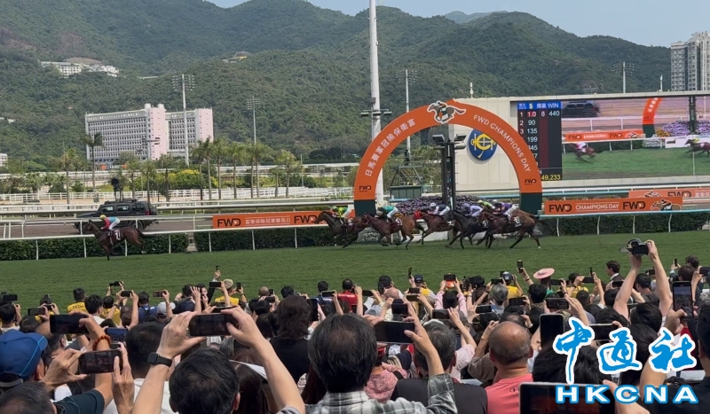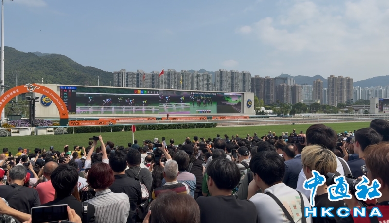 •   4月26日,香港沙田馬場氣氛火熱,被一片沸騰的歡呼聲徹底淹沒。一年一度的國際馬壇焦點盛事“富衛保險冠軍賽馬日”激烈上演,現場數萬名觀眾的吶喊聲響徹雲霄。(香港中通社記者 譚暢攝) 香港中通社圖片