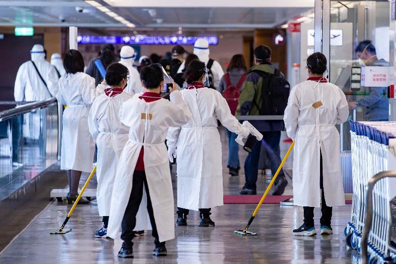 圖為台灣桃園機場內的清潔人員 來源:香港中通社 報道說,染疫者足跡擴及到桃園、新竹等北台灣縣市,台灣中信金、富邦金、玉山金等多家企業宣佈啟動北台灣員工居家上班,台灣華南金與第一金今天開始啟動分流彈性上班,新光金、台新金、兆豐金則已規劃居家辦公措施,將視疫情狀況調整。廣達、英業達、鴻海旗下鴻佰、台達電與華新麗華集團旗下PCB廠瀚宇博等,全面對桃園廠區啟動新一波防疫措施,包括分區、分層、分流上班,同時禁止跨廠區移動、禁止外來訪客。 桃園市教育局昨天表示,中壢區中原大學、啟英高中、中壢家商、中壢中學,桃園區武陵高中、中興中學及楊梅區治平高中共7校,明天預防性停課一天。 另外,原本已停課14天的則有華勛小學及附幼、普仁小學及附幼、翰林安親班、興仁小學及附幼、中壢高商(含進修部)、東興中學與芳華補習班。 據悉,台灣地區昨日新增13例本地個案,9人曾至西堤中山店用餐,另2人與餐廳染疫工讀生有關,西堤群聚感染累計22人。 相關新聞