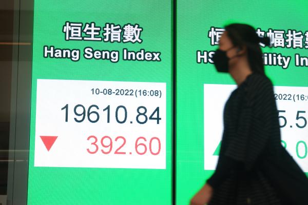 香港中通社8月10日電 (記者 崔靜雯)港股連跌3個交易日,10日恆生指數收市報19610點,跌392點或2%。大市成交892.72億港元。
