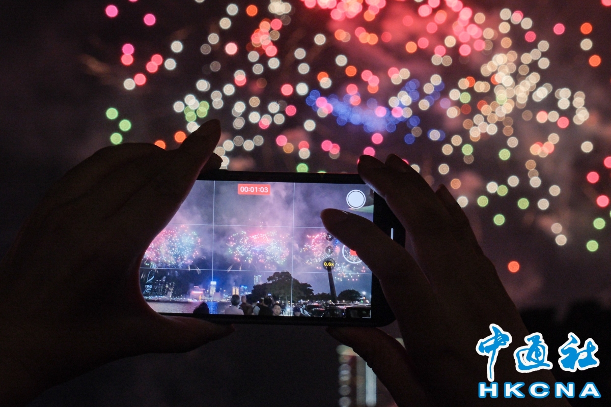 香港中通社10月1日電 題:國慶氛圍感“拉滿” 盛世煙花耀香江