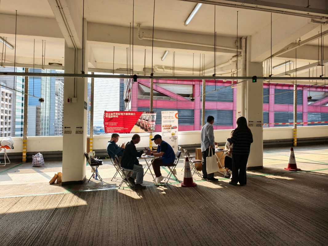 的士司機在上環林士街停車場服務站登記使用電子繳費媒介。香港中通社記者 梁嘉軒攝