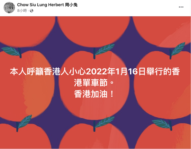 香港單車節(圖片來源:資料圖) “香港單車節”2019年因“修例風波”影響而取消,去年又受新冠肺炎疫情影響而未舉行,終於將在明年1月16日回歸。 今年單車節首次移師港珠澳大橋香港段舉行,名額3000人。香港旅發局近日呼籲,車手切勿在服裝或單車上展示含有政治元素的標語。若車手穿著及展示不適當的衣服或標語,大會會作出勸喻,希望車手更換衣服或移除標語。若車手不合作,則會交由執法部門處理,並形容相關做法已成為“基本常態”。有記者問及何謂不適合標語,“香港加油”是否不適合時,旅發局回應“相信你明白的”。 “香港加油”字面上似乎與政治取態無關,實則在2019年“修例風波”期間被香港示威者廣泛使用。早前煽暴藝人杜汶澤爆料,這款“香港加油”字體是出自台灣公司之手。香港立法會議員葛珮帆直言,可翻轉閱讀的藝術字體“香港加油”有“港獨”口號的意味。 除了香港單車節,另一香港體壇盛事的主辦方亦強調,不希望參加者“搞政治”。