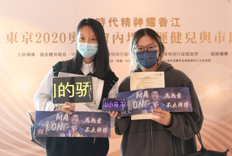 香港新聞網12月5日電 國家隊男乒隊長馬龍憑高超技術、帥氣形象、可愛性格收穫海內外大批粉絲。12月5日,來自國家隊的東奧會奧運健兒在香港理工大學做主題報告,不少香港粉絲持自製手幅、電子橫幅入場,見到偶像難掩激動。香港理工大學學生金子涵、周盈君對記者說,香港有很多馬龍粉絲,這次近距離見偶像,更覺馬龍可愛帥氣,兩人更喊出應援口號:“鞍山小馬,不怕困難!”(記者 王豐鈴)