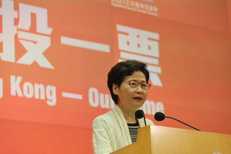 香港中通社記者謝光磊 攝 林鄭表示,今次選舉對香港未來至為重要,亦是完善選舉制度後的首次重要公開選舉,投票是選民表達支持立法會恢復理性,和行政機關配合互動為香港未來發展作出應有的貢獻的方式。她再次呼籲所有已登記選民12月19日出來投票,為香港未來投下信心一票。 【編輯:李泺】