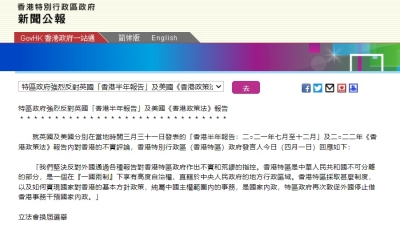 香港特區政府強烈反駁四國外長及美國國務卿聯合聲明分享到: