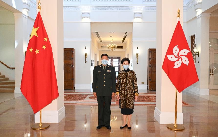 香港新聞網1月10日電 香港特區政府行政長官林鄭月娥今日(10日)上午在禮賓府與中國人民解放軍駐香港部隊(駐港部隊)司令員彭京堂少將會面,行政長官辦公室主任陳國基亦有出席。