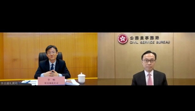 香港新聞網1月27日電 香港公務員學院今日(27日)與外交部駐香港特別行政區特派員公署(以下簡稱“公署”)舉辦首場“國家外交事務系列”講座,由外交部政策規劃司司長苗得雨透過視像形式主講,主題為“深入學習領會習近平外交思想,共創香港美好未來”。公署副特派員楊義瑞亦出席是次講座。約220名首長級和高級公務員通過網絡參與今日的講座。