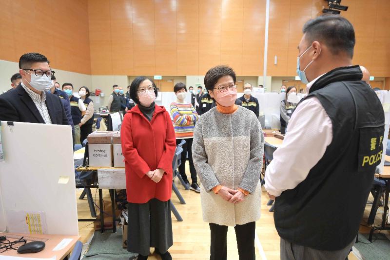 香港中通社2月1日電 2月1日大年初一,香港特區行政長官林鄭月娥前往位於啟德和旺角的兩個個案追蹤辦公室(追蹤辦)探訪當值同事,鼓勵他們為應對當前本地疫情而須竭力加緊追蹤確診個案的接觸者,並向他們拜年,感謝他們在佳節期間為抗疫不辭勞苦。