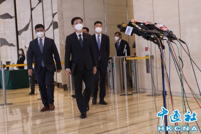 香港新聞網4月12日電 香港特區政府前政務司司長李家超12日繼續拜訪行程,他在拜訪完第四界別中企協會選委後見記者時表示,感謝選委在自己領域想到一些方向給他參考,他會和團隊研究,這對寫政綱有參考價值;指出中企協會在香港經濟民生和整體生活所需方面有舉足輕重的作用,中企協會不同機構在抗疫時期也做了不同工作,令香港的生活等方面都得到了保障;他預告,當日下午將有兩場與選委線上見面會,預計有100位選委出席。(記者 李明珠)