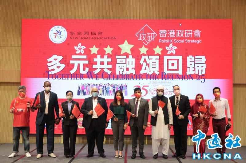 香港中通社7月1日電(記者 張明臻)7月1日是香港回歸祖國25周年的日子,新家園協會聯同香港政研會舉辦”多元共融頌回歸“活動,並由眾多少數族裔團體共同協辦。