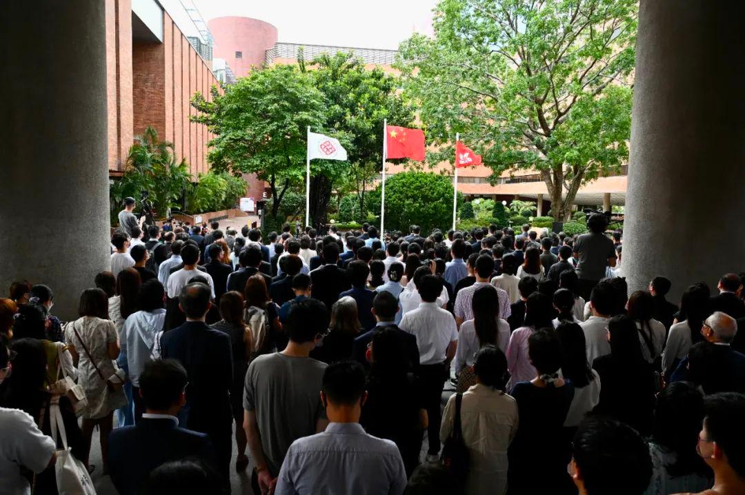 2022年7月1日,中國香港,香港理工大學於校園舉行升旗儀式。資料圖 香港區域法院林偉權法官表示,這次暴動發生在九龍區核心地區,示威者曾投擲約250枚汽油彈,場面極為暴力,案情十分嚴重,判刑須具阻嚇性。 據悉,10名罪成的被告依次為:歐陽浩明(28歲電器技術監督)、翟柏龍(31歲攝影師)、湛沛林(22歲學生)、陳思進(21歲發型師)、鄭太君(28歲無業人員)、莊正(31歲音樂教師)、周嘉慧(22歲學生)、周諾澄(22歲學生)、簡澧然(27歲音樂教師)及黎子欣(25歲售貨員)。 各被告同被控2019年11月18日在香港窩打老道與鹹美頓街之間的彌敦道一帶參與暴動。 【編輯:许丰悦】
