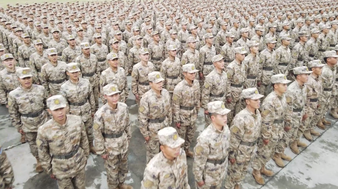 在莊嚴的八一軍旗下,新戰士們高舉右拳、鄭重宣誓:我是中國人民解放軍軍人,我宣誓,服從中國共產黨的領導,全心全意為人民服務......”錚錚誓言表達著正式成為一名軍人的光榮與自豪。