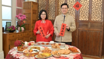 香港中通社1月21日電 香港特區行政長官李家超21日偕夫人李林麗嬋發表農曆新年賀辭,祝願全港市民身體健康,平安幸福,笑口常開,萬事如意。