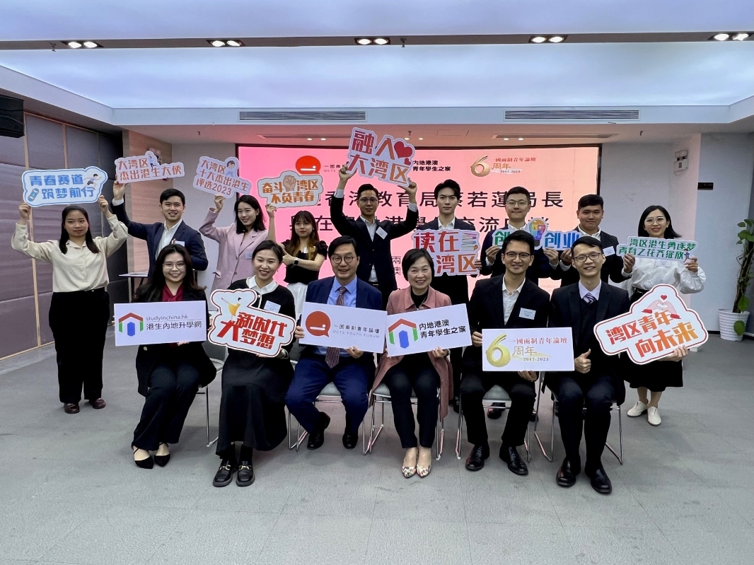 蔡若蓮(前排右五)與該校校長及師生合照。 蔡若蓮其後到訪內地港澳青年學生之家,與在內地高等院校就讀的香港學生和畢業生會面,了解他們在內地升學和就業的情況。她勉勵他們努力學習和工作,同時建立內地和香港的人脈網絡,抓緊國家“十四五”規劃及大灣區建設帶來的契機,積極融入國家發展大局。 蔡若蓮博士9日、10日將率團前往前海及南沙,視察高中公民與社會發展科內地考察安排。訪問團成員包括教育局常任秘書長李美嫦、教育局副秘書長陳慕顏,以及20多位教育界代表。(完) 【編輯:崔靜雯】