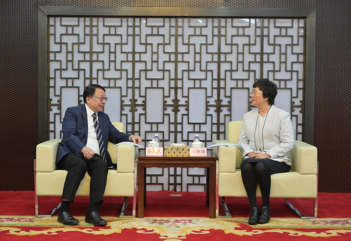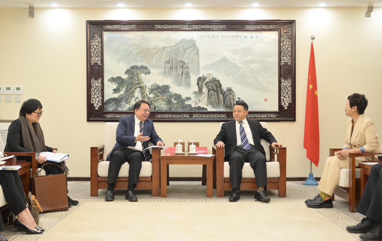 香港新聞網4月27日電 香港特區政府政務司司長陳國基27日繼續北京訪問行程。 早上,陳國基到訪國家文化和旅遊部,與副部長、國家文物局局長李群會面,雙方就鞏固提升香港在國家“十四五”規劃下作為中外文化藝術交流中心定位的政策措施,交流意見。