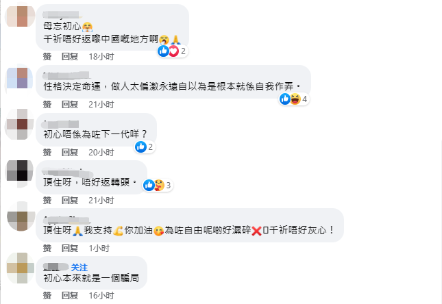 “同路人”評論 當該帖文及相關留言被截圖並於香港網絡流傳後,面對移民港人的窘境,不少香港網友卻同情不起來! 有網友留言幫他們回憶“初心”,稱部分港人此前聲稱移民是“為了下一代”“為了自由”,到頭來才發現所謂“初心”不過是“一個騙局”。 有網友一針見血地指出,部分香港“黃絲”“做人太偏激,永遠自以為是”,只願意相信自己幻想的那一套,最後陷入“自我作弄”的命運。 “頂住,千萬不要回來!”還有網友對移民“黃絲”“喊話”道。