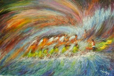 畫家代表、星河畫藝會伍汝會長盛讚藝術家們專門創作端午文化書畫作品,盛讚潮州商會和藝術香港舉辦具有愛國愛鄉意義的文化活動,盛讚潮州粽子的風味。他本次的參展作品是油畫《極速》,反映龍舟賽事的拼搏精神。(完) 【編輯:崔靜雯】