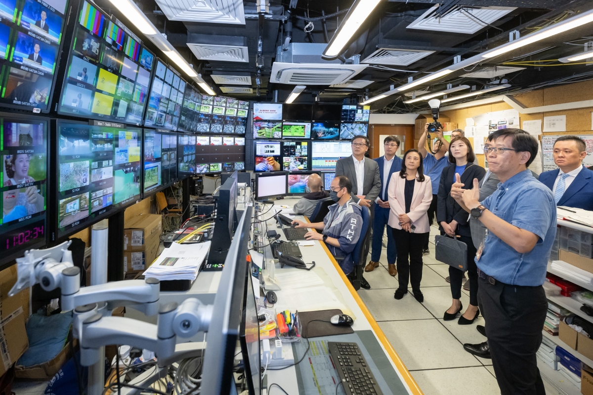 圖片來源:香港政府新聞處。圖示議員聽取廣播處長張國財簡介港台為加深市民認識國家和“一國兩制”而製作的節目。 議員隨後參觀廣播大廈內的設施,包括電台視像節目錄音室、流動錄音室、中央控制室和音樂圖書館資料庫。他們亦參觀了中文和英文新聞直播室和新聞影像製作設施,以及製作英文節目的第三台和第四台辦公室。 議員接着到電視大廈參觀電視總控制室、剪接室、電影和錄像帶資料庫和設有虛擬布景的錄影廠等設施。