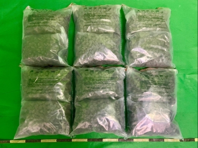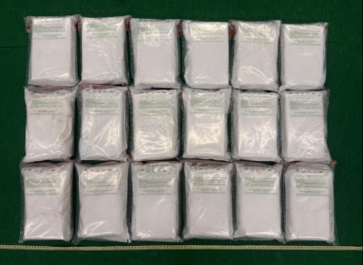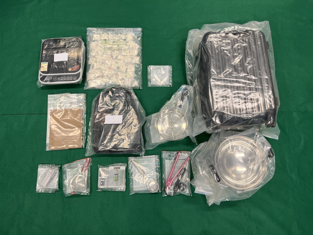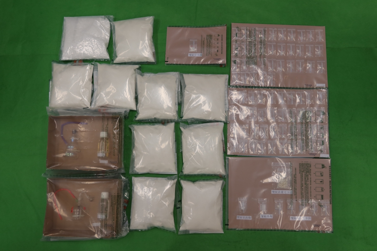 圖片來源:香港政府新聞處。圖示海關人員於首三宗案件中檢獲的懷疑毒品和懷疑毒品吸食工具。 於首三宗案件中,海關人員14日在深圳灣口岸檢查三個從英國寄出、報稱載有枕頭的快遞郵包,發現內藏約9公斤氯胺酮。跟進調查後,關員15日在旺角進行監控遞送行動,拘捕兩名男子,並於附近兩個住宅單位內再檢獲約毒品和一批毒品吸食工具。 於第四宗案件中,關員15日晚上在上水截查一名形跡可疑的男子,在其手持的紙袋內檢獲約一公斤霹靂可卡因,遂把男子拘捕。經調查後,海關人員在土瓜灣再拘捕一名涉案男子,在他的背包和行李箱內再檢獲多品和一批製毒工具。 海關表示,繼續根據情報分析,加強打擊販運毒品活動,同時呼籲市民提高警覺,切勿貪圖金錢利益而參與販毒活動,不要接受任何人士聘請或委託運送受管制物品進出香港,亦切勿於未確定物品屬性的情況下,貿然協助他人運送。此外,市民亦要避免將個人資料或地址交予他人以作收取郵包或貨物用途。(完) 【編輯:崔靜雯】