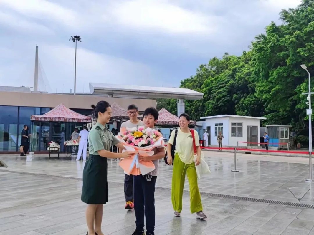 為第一位入營市民送上一束鮮花。(駐港部隊圖片)