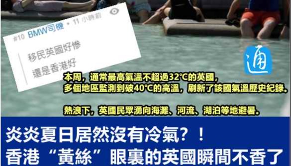 香港新聞網7月12日電 為所謂“自由”而移英的香港“黃絲”發現,在英國的炎炎夏日裡,自己連享受空調的“自由”都沒有…… 日前,一位香港網友在社交平台臉書的“香港醫護”討論群組發帖表示,“據說今年的熱浪會極度驚人”,提醒大家“中暑”已涉及醫學問題,應予以重視。 或是聯想到了移居英國的港人,該網友接著指出,即使是這樣的炎炎夏日,在英國想要裝一部空調卻不是一件容易的事,“不是需要老婆(同意),而是需要council(委員會)批准”。至於怎樣才能成功獲批,該網友無奈地形容“是一種秘密”。 最後,該網友奉勸仍留在香港的人,“記得好好珍惜香港開冷氣的自由”。 該帖文一經發出,便立刻引起不少移英港人的“共鳴”。在帖文評論區,有網友表示,在英國安裝空調的情況確實如帖主所言,council“好多時都不批”,並求助於其他網友“怎麼申請(才會成功)”。