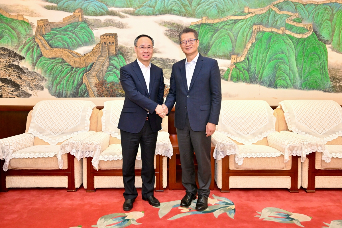 陳茂波(右)拜會國家金融監督管理總局局長李雲澤(左)。 陳茂波也與國家金融監督管理總局局長李雲澤會面,雙方就內地與香港的經濟和金融發展最新情況交流,並討論在金融監管方面加強協調合作、擴寬互聯互通渠道及探討金融創新等。 (完) 【編輯:孟宜君】