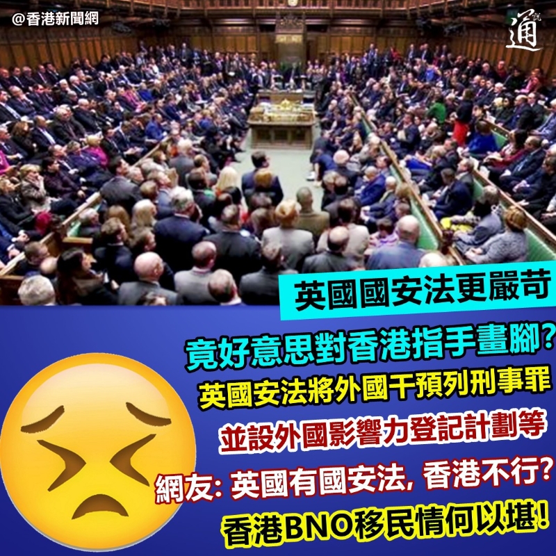 香港新聞網7月17日電 英國近日的這一舉動,可謂盡顯英式虛偽與雙標! 英國議會去年5月開始審議《國家安全法案》,今年7月11日經最後一道程序“英王御準”後,正式成為法令。 英國內政部表示,法案首次將“外國干預”列作刑事罪,意味干預投票、言論自由等英國公民基本權利,均屬違法;並新設所謂“外國影響力登記計劃”,經外國政權授意從事政治影響力活動的個人或組織日後必須登記,否則亦屬違法。