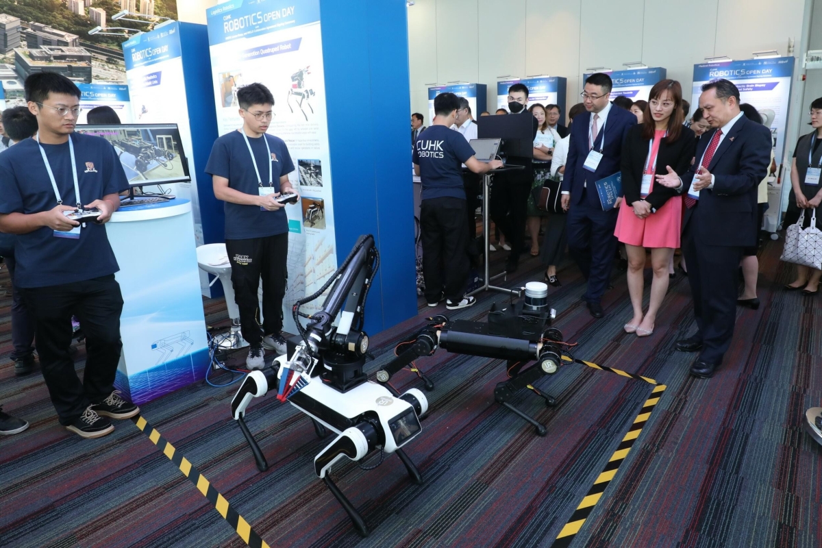 圖片來源:中文大學。 中大校董會主席査逸超表示,這次活動展示了超過30項由中大研究團隊、衍生企業及InnoHK中心開發、適用於多種應用的尖端機械人技術。我們衷心感謝天石集團有限公司慷慨捐贈,成立中大天石機器人研究所,亦感謝香港科技園公司與中大共同舉辦這項意義重大的活動,為我們創造良機,與合作夥伴和支持者分享中大豐碩的研究成果。 特區政府創新科技及工業局副局長張曼莉表示,特區政府將於今年設立100億元的“產學研1+計劃”,進一步促進產學研合作,加快推進優秀深科技“從1到N”的研發成果轉化與產業發展。我期望中大與政府繼續攜手,加速將包括尖端機械人技術等世界級研發成果轉移及商業化的步伐,為香港打造一個更有活力的創科生態系統而努力。 中大副校長岑美霞認為,機械人科技有着改變世界的無限潛力,涵蓋物流、建築到醫療等不同應用範疇。中大一直是機械人產業的先驅,不斷突破技術的界限。這次機械人創科開放日是一個難得的機會,讓中大展示其優秀的創新成就,並讓公眾和業界亦有機會一睹機械人的無限可能,從中得到啟發。 同日,香港科技園公司、聯想集團及香港物流機械人研究中心亦簽署合作協議,旨在攜手培育和孵化下一代年輕學者和創業者,幫助他們通過機械人及人工智能技術為世界帶來革命性突破。香港科技園公司行政總裁黃克強、聯想創投集團投資總監薛蘇葵、香港物流機械人研究中心總監劉雲輝教授代表三方簽署協議。 香港科技園公司行政總裁黃克強表示,這次合作再次引證了科技園公司致力推動創新科研成果的轉化和商品化,促進香港的創科發展、壯大本地人才庫。科技園公司的創科生態圈內共有約40間機械人技術公司。我們與聯想集團及香港物流機械人研究中心的共同培育計劃,將會為機械人技術初創企業提供專家知識、創業指導、市場網絡、融資機會等全方位支援,幫助它們擴展業務或轉型。 中大天石機器人研究所所長、香港物流機械人研究中心總監劉雲輝表示,們研究所和研究中心自成立以來,得到大學、政府及各界的大力支持,有幸聚集了一批優秀的教授,為香港和內地培養了博士、博士後等大量的高端人才,孵化了八家機械人公司,其中兩家已經成為行業的全球領跑者。通過這次活動我們希望向公眾介紹我們的最新研究成果,希望跟產業界、投資界等在機械人研發、產業化等多方面深入合作,一起為香港乃至中國內地的創科發展作出貢獻。 聯想集團高級副總裁、聯想創投集團總裁賀志強表示,聯想集團與香港淵源已久,聯想創投也於2011年起,就與香港院校、香港科技園等建立了深入的合作。未來,我們將發揮聯想全球的產業資源優勢,充分利用大灣區的區位及政策優勢,與香港中文大學、香港科技園建立可持續、系統化科技創新產業化平臺,探索機器人與人工智能融合的創新突破機會,支持香港機器人領域的科研成果產業化落地,推動香港國際科創中心建設,構建波瀾壯闊的香港創科藍圖。