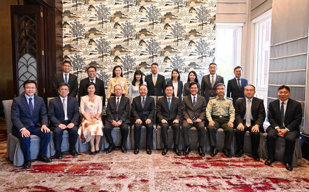 李家超(前排右五)、歐陽玉靖(前排左五)。 李家超明日(28日)將繼續在吉隆坡的訪問行程,到訪當地企業,並出席由特區政府與香港貿易發展局共同主辦的商務午餐會,與當地商界領袖會面交流。 (完)