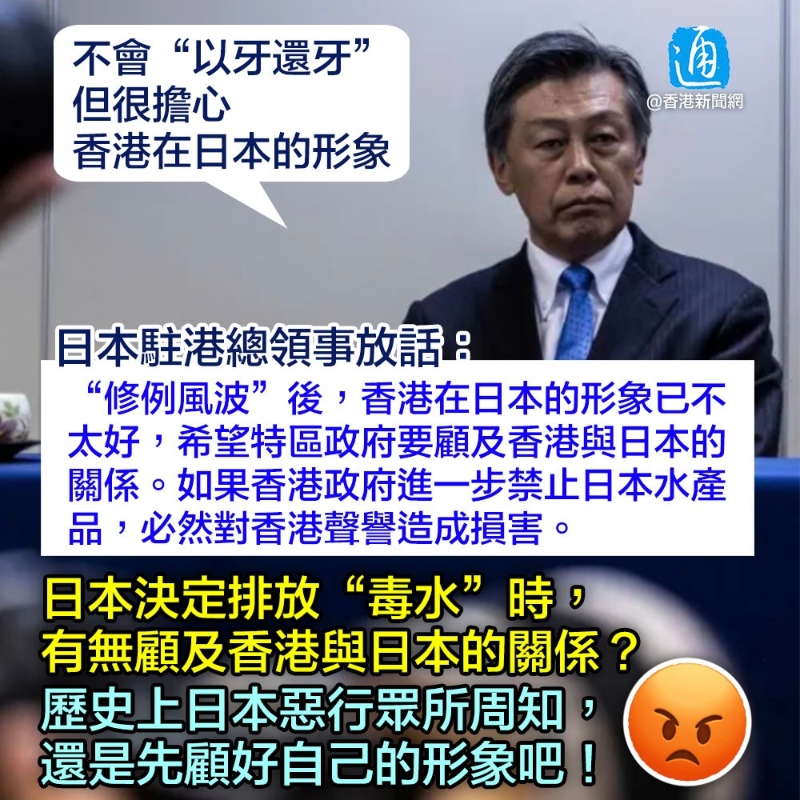 香港新聞網8月7日電 香港特區政府聲明若核污水排海,會即時禁止日本相關水產品後,日方一邊保證不會“以牙還牙”,一邊又拿“修例風波”說事? 日本駐港總領事岡田健一日前接受港媒專訪,被問及“若內地及香港進一步禁止日本產品,日本會否採取反制措施”,他信誓旦旦地稱,“我可以保證日本不是一個會作出不合邏輯、卑鄙、以牙還牙的國家”。 接著,他話鋒一轉說:“但我很擔心香港在日本的形象。”他宣稱,“修例風波”後,“香港在日本的形象已不太好”,希望特區政府要顧及香港與日本的關係。岡田健一說,150個國家及地區無限制日本相關產品進口,28至29個國家或地區正廢除禁令,但香港、澳門及內地將會加強限制,反問“如果你是名日本人,你如何想?”他聲稱自己很擔心,“如果香港政府這樣做,必然對香港聲譽造成損害。” 岡田健一又為日方將核污水排海的行為進行辯解,他還說“希望香港人明白一個簡單邏輯,如果日本政府排放危險的水到日本附近的大海,首當其衝受害的是日本人,任何政府都不可做這愚蠢行為,那會立即危害到自己的人民。” 岡田健一聲稱日方不會“以牙還牙”,卻又搬出香港“修例風波”說事,立法會議員梁熙直指其言論可笑:“無牙老虎憑什麼以牙還牙?”質疑日本在決定要排放“毒水”時,“又有無顧及香港與日本的關係?”