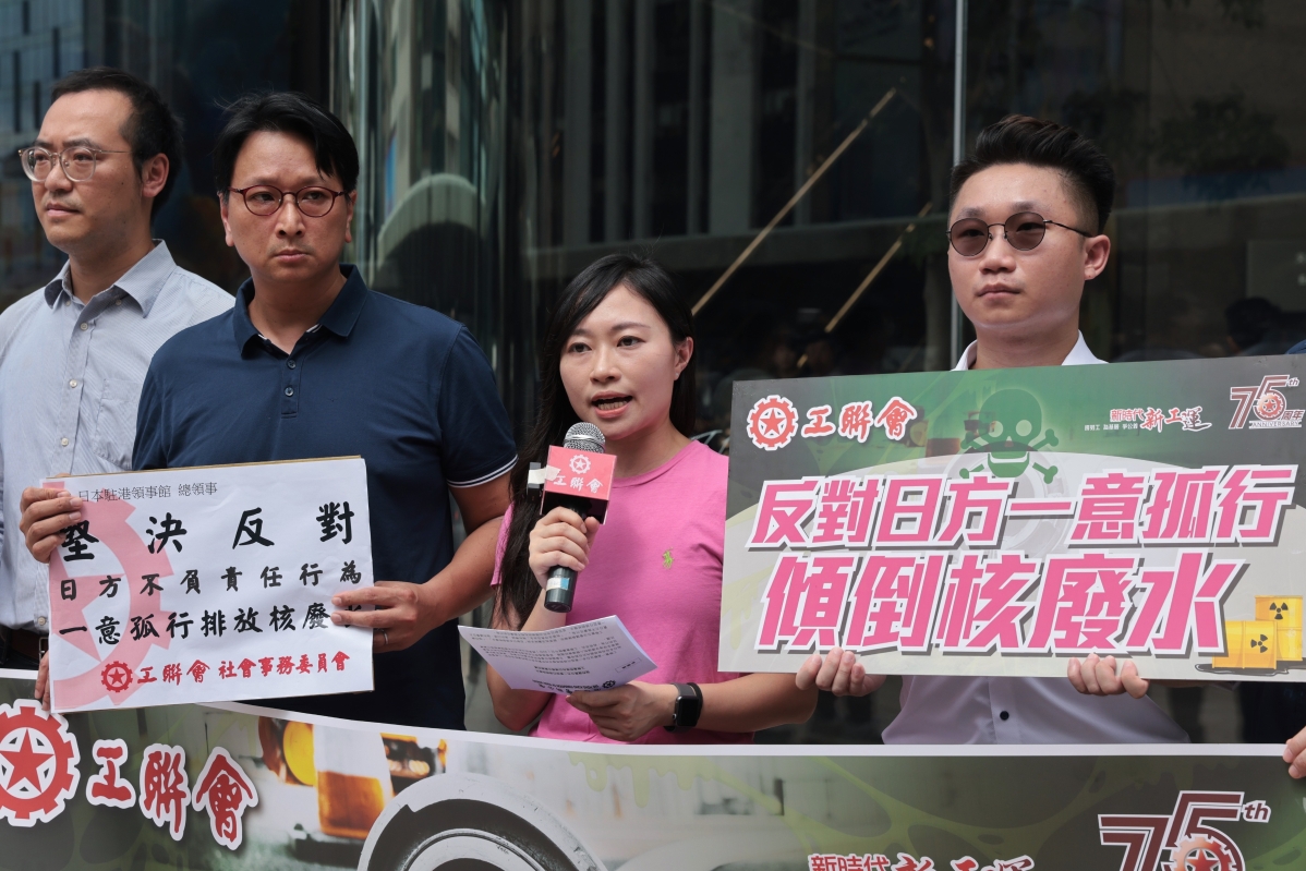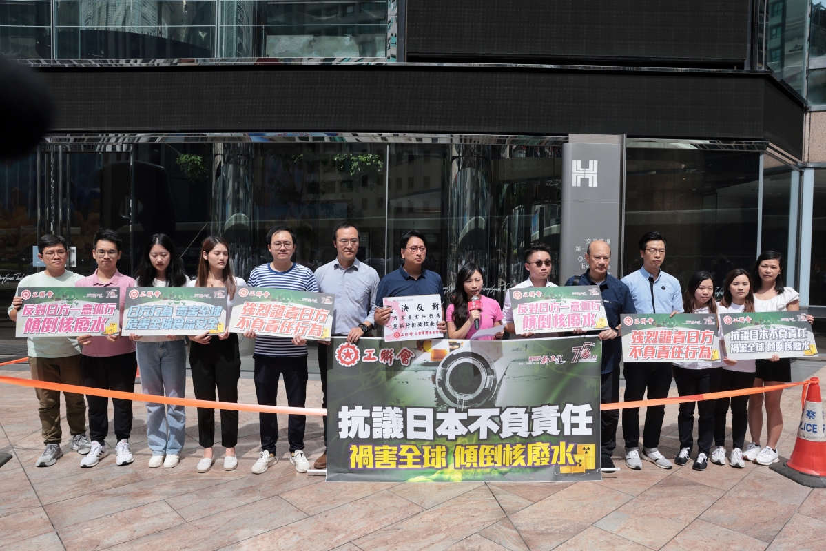 香港中通社圖片 此外,新社聯理解特區政府因應日本福島核廢水排放計劃而啓動的進口管制措施,有可能對部份行業或營運商帶來不同層面的影響。我們促請特區政府除了與本港的日本食品進口業界和餐飲業界保持密切溝通外,也能多走一步,包括考慮跟受影響行業商討預案及預留應急基金,以扶助各界應對困境。 香港工聯會團隊日前第四次前往日本駐港總領事館進行嚴厲抗議,強烈譴責日本一意孤行傾倒核污水。工聯會認為日本政府無視國內外反對呼聲,不顧國際社會對排海計劃的正當性,漠視排海計劃損害全球海洋環境和人類健康的風險,執意推進核污水排海計劃是極端自私和不負責任的行為。 香港民建聯也將到日本領事館請願,抗議日本自私行徑。(完) 【編輯:陳偉根】