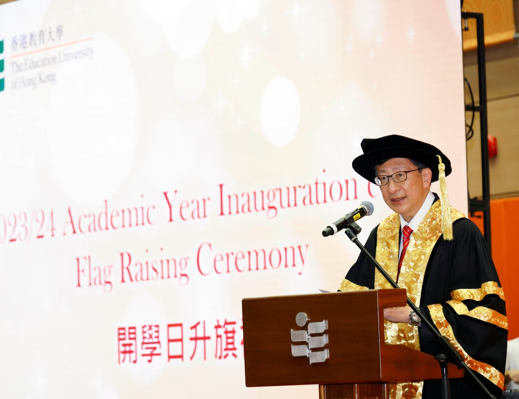 圖片來源:香港教育大學 教大學生更首度與教大附屬小學及幼兒園的學生合作,組成升旗隊,負責升掛國旗、區旗及大學校旗,彰顯教大大家庭的團結,及薪火相傳的精神。 首次以校長身分出席儀式的李子建表示,很高興和師生一同開展新學年:“升旗儀式有助培養學生國民身份認同,在開學日舉行升旗禮,別具意義。” 他分享教大的發展方向。他說,我們將繼續強化教師專業、拓展教育科技,開展更具影響力的科研和教育,亦會加強與內地及不同國家的連繫,提供更多學習機會,培養學生成為一個貢獻社會、立足國家、面向世界的優秀公民。 (完) 【編輯:崔靜雯】