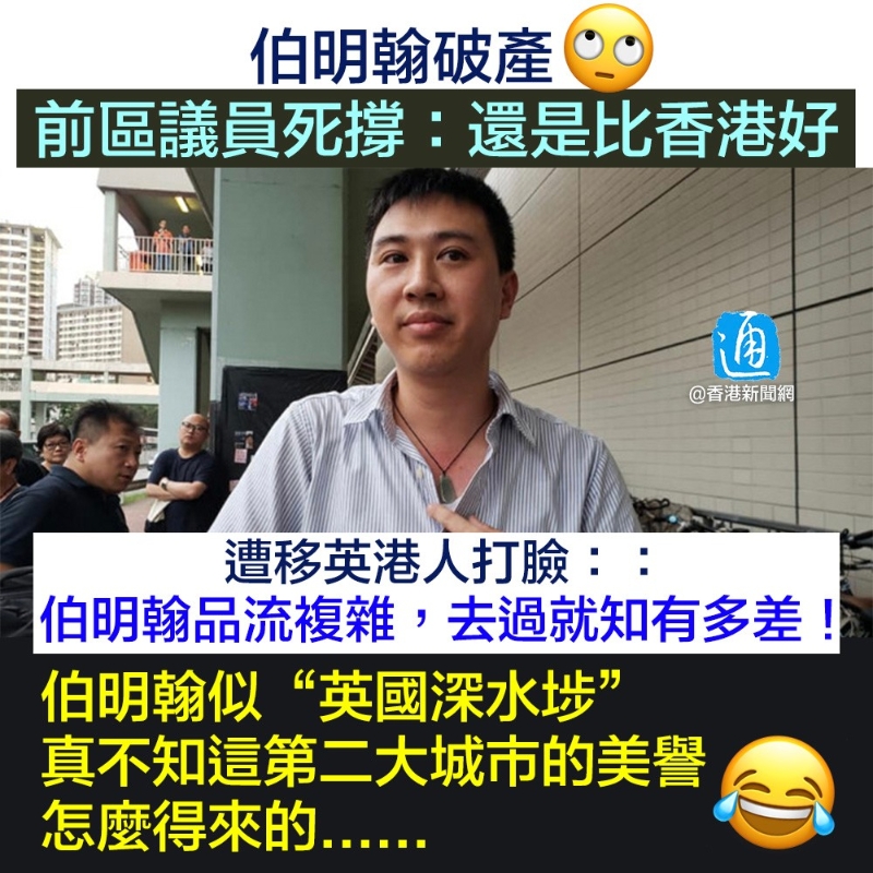 香港新聞網9月7日電 英國第二大城市伯明翰日前宣布破產,有香港前區議員卻堅持聲稱當地情況比香港好,實在是把“阿Q“精神發揮到極致! 正被廉政公署通緝、逃竄英國現居伯明翰的香港前區議員丘文俊,面對伯明翰政府破產可謂是毫無怨言。他近日接受外媒訪問時輕描淡寫聲稱,這“純粹是一個財政危機”,實際情況並非外界想像般嚴重,最大影響是估計會加市政稅。他還積極表態:“既然在這裡生活就一起迎難而上。”若丘文俊還身在香港,不知道會不會同樣“熱愛這片土地”呢? 為英國“背書”的同時,丘文俊不忘拉踩一波,宣稱港府“道德破產”,還說“相比管治誠信破產的港府”,即使伯明翰市政府陷入財務危機,自己仍對英國民主制度有信心。 “到底是誰道德破產?” 有網友直呼丘文俊“說的什麼鬼話!”“伯明翰市政府通過宣告破產來逃避一切責任,這才是失去誠信的表現!” “查實經濟破產之前,道德早已破產!”有網友稱丘文俊完全搞錯了,怒斥其不該為伯明翰市政府的差勁表現找藉口。