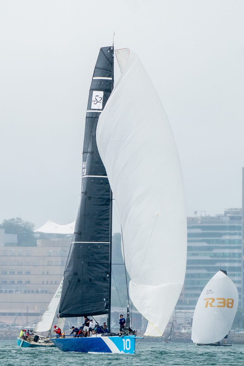 香港新聞網9月10日電 香港遊艇會的開鑼賽 ─“寶馬秋季帆船賽”10日於維多利亞港上演,為2023-2024年帆船賽季揭開戰幔。經歷漫長的暑假後,維港千帆並舉的場面重現。賽事錄得近90艘分別來自七個統一級別、Sportsboat以及大船級別的賽船,近600名帆船運動員在維港同場較量。 開鑼賽原本設三場賽事,9日為首場,10日為次場及尾場賽事。惟受周末海葵殘餘環流帶來極端天氣的影響下,賽會為為安全起見縮短賽事,只設10日兩場賽事。天文台於當天早上發出黃色暴雨警告訊號,首場賽事延至上午11時35分開始,尾場賽事緊接首場賽事完結後立即展開。賽事起點設於九龍灣一帶,賽道主要在九龍灣,紅磡及筲箕灣一帶以繞泡賽形式舉行。