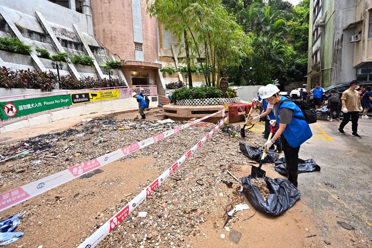 香港新聞網9月10日電 香港特區政府啟動動員機制協助處理因特大暴雨對各區造成的破壞。公務員事務局10日一行30人組成應急隊伍,前往鰂魚涌和筲箕灣協助清理路面泥土,讓市民11日可以暢通無阻上班、上學。公務員事務局常任秘書長梁卓文到場支持同事,以及參與清理工作。